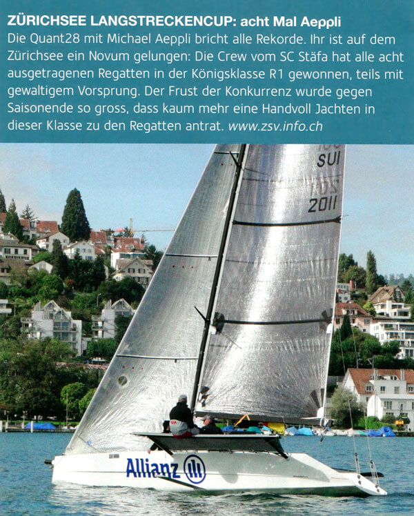 The new season got off to a good start on our home turf. We won the spring races not only in our class but also overall. The Q28 was clearly the fastest boat in the field. In June we made another pilgrimage to Lake Geneva to take care of "unfinished business" from the previous year during the two traditional regattas.